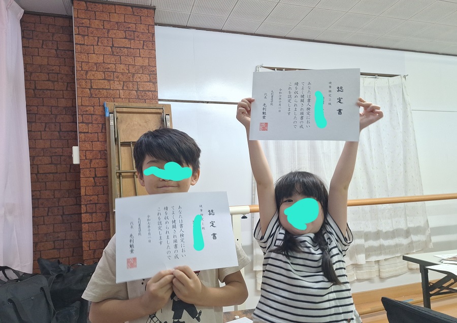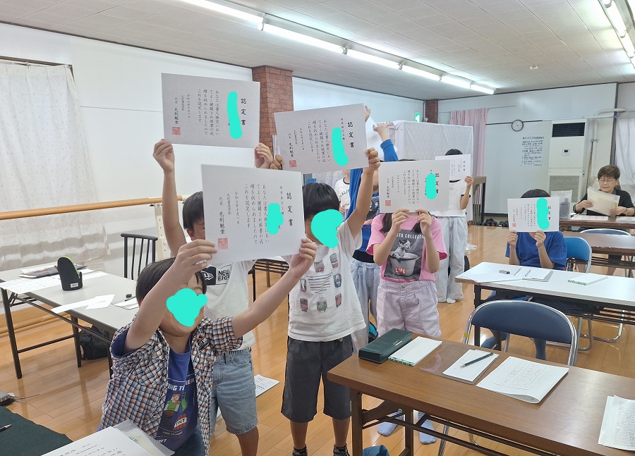 ***検定の認定証と勤労感謝のはがきアート制作しました・アート作品勤労感謝の作品とみんなで記念撮影